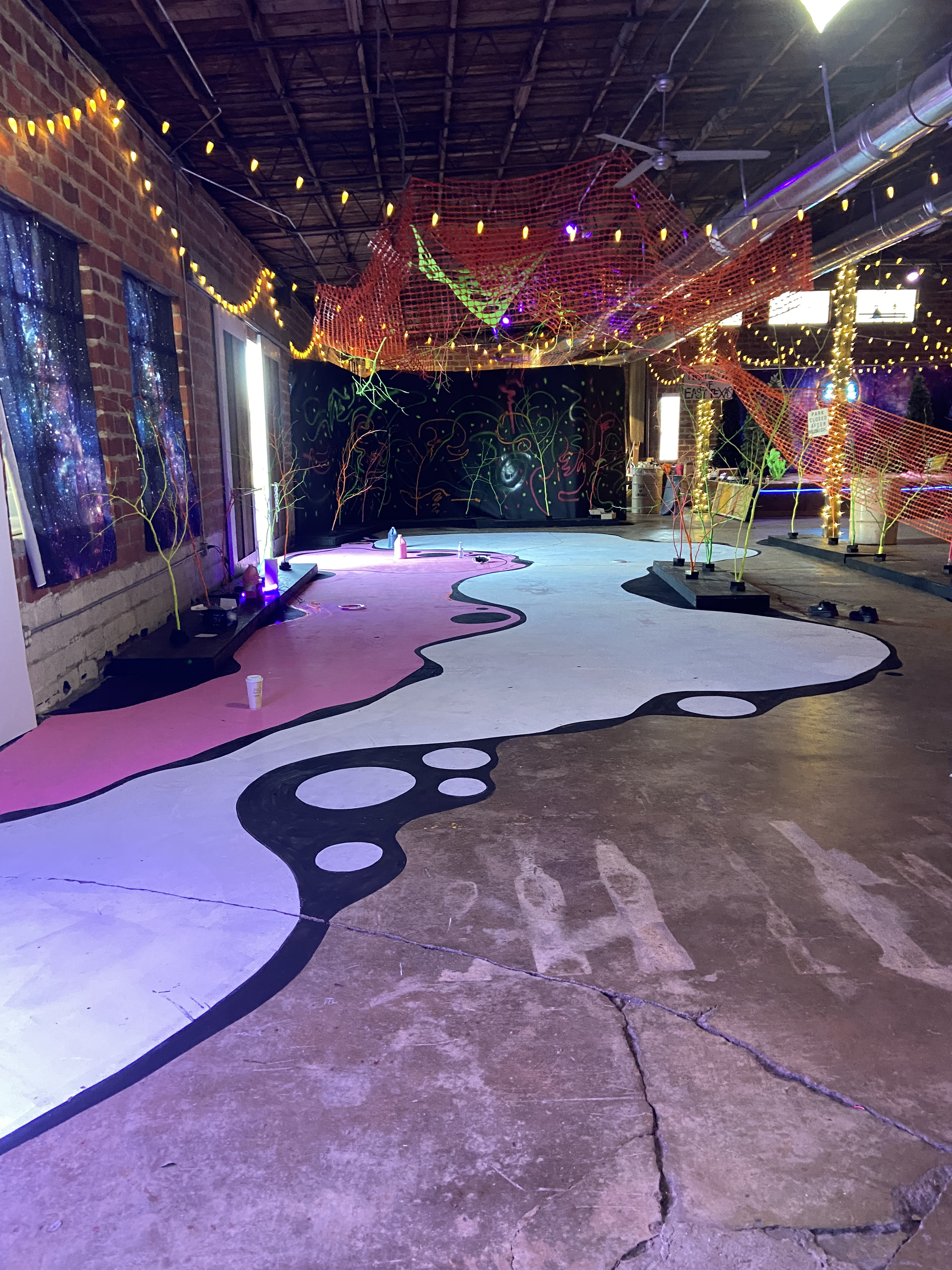 I was asked to curate a team to fabricate an artsy cosmic themed exhibition inside of the 10,000 sqft Blackberry Pavilion . The crew and I took several weeks to develop a delightful multi-sensory Art and science experience complete with chalk artists and gobs of neon paint.