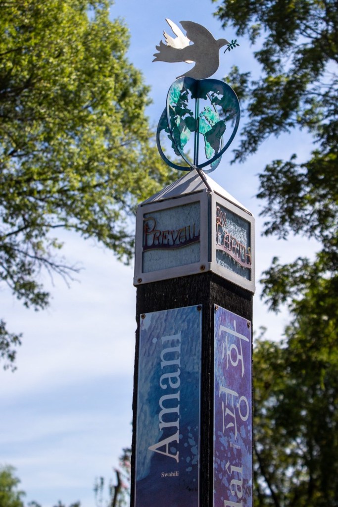 ( Diane Mainz Billingly designed the metal dove finale and fabricated the metal Peace pole.)
